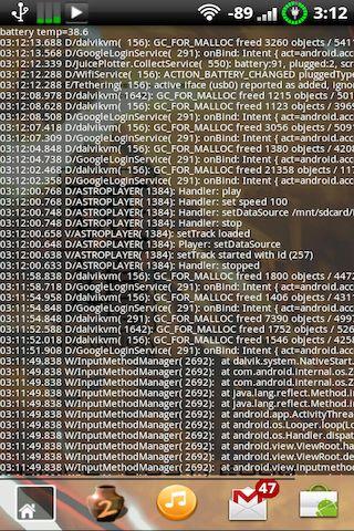 Widget de l'écran d'accueil qui affiche le journal adb.