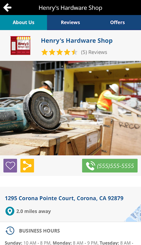You can search for local businesses by category, distance, and rating. Look at image galleries, offers, business info, and specializations.