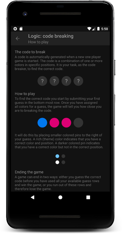 Une partie de Logic : code breaking dure en moyenne de deux à cinq minutes en fonction de la difficulté choisie.