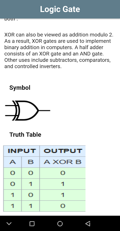 Cette application fournit des informations de base sur Logic Gates pour les étudiants.