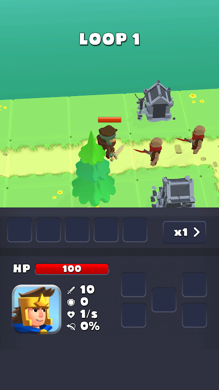 Watch your hero, fight with various enemies, set up helpful buildings each loop!