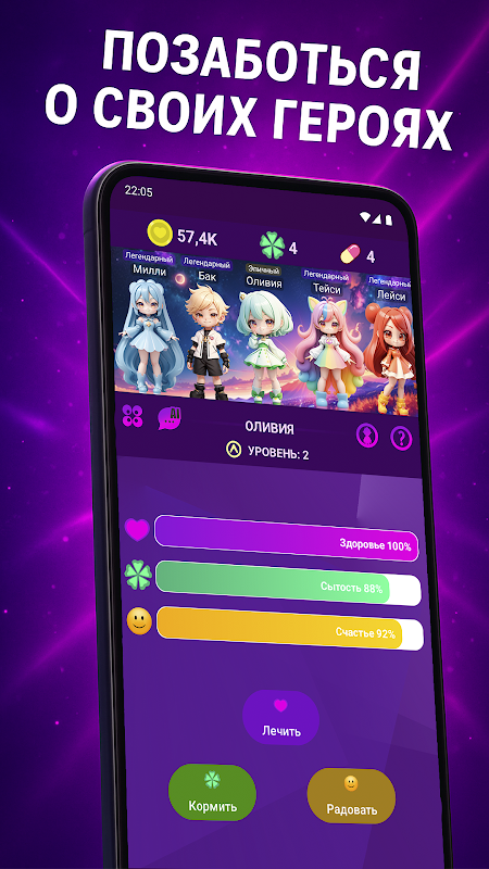 Procurez-vous votre première Lova - la charmante Olivia - et partez pour un voyage passionnant ! Prenez soin de vos Lovecoins : nourrissez-les, soignez-les, rendez-les heureux et regardez leur humeur se transformer en or - Lovecoins ! Plus le niveau et la rareté de la pêche (commune, rare, épique, légendaire) sont élevés, plus les revenus sont importants ! Débloquez de nouveaux personnages dans la boutique - chaque tour peut vous donner un exemplaire pour passer au niveau supérieur ou un Lova unique !