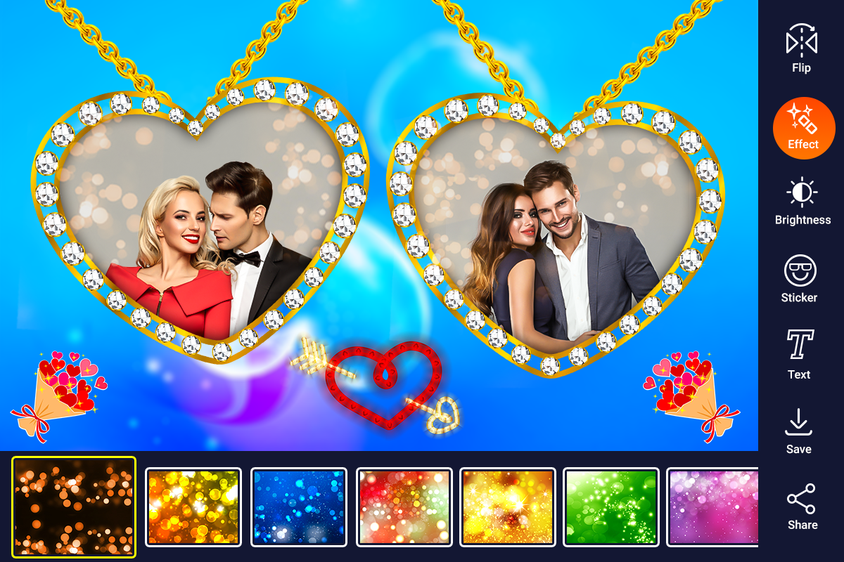 Pour devenir une célébrité instantanée avec votre photo sur des cadres de médaillon d'amour. Choisissez simplement le cadre qui convient le mieux à votre photo et créez une œuvre d'art impressionnante. Impressionnez vos amis avec des effets sympas.