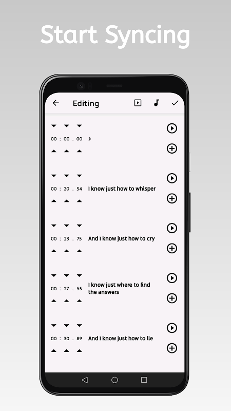 • Contrôle précis du timing : Ajustez le timing de chaque ligne de paroles pour assurer une synchronisation parfaite avec la musique.