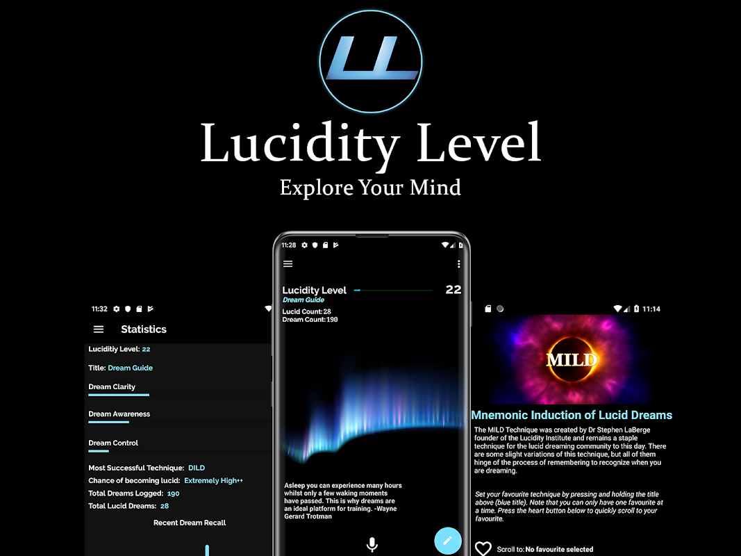 Imaginez diriger vos rêves en toute conscience, pleinement immergé dans des mondes réalistes où tout est possible. Lucidity Level vous aide à réaliser des rêves lucides - des rêves dans lesquels vous savez que vous rêvez - ouvrant la porte à des aventures limitées uniquement par votre imagination.