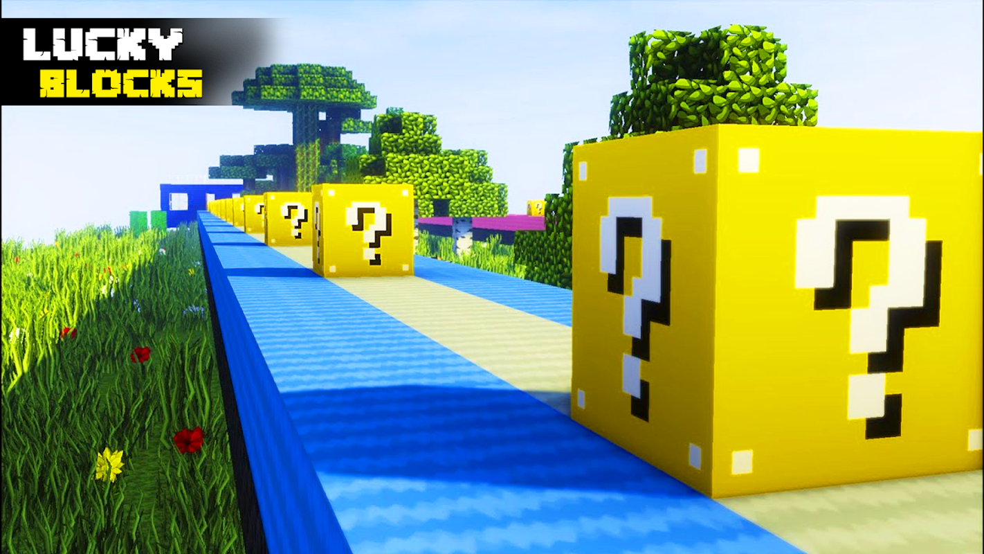 L'application mod Lucky Block ajoute un bloc qui, lorsqu'il est cassé, laisse tomber un assortiment d'objets et de blocs qui peuvent être chanceux ou malheureux. Il a également des modules complémentaires distinctifs, tels que le bloc Rainbow Lucky et les blocs Pink Lucky.