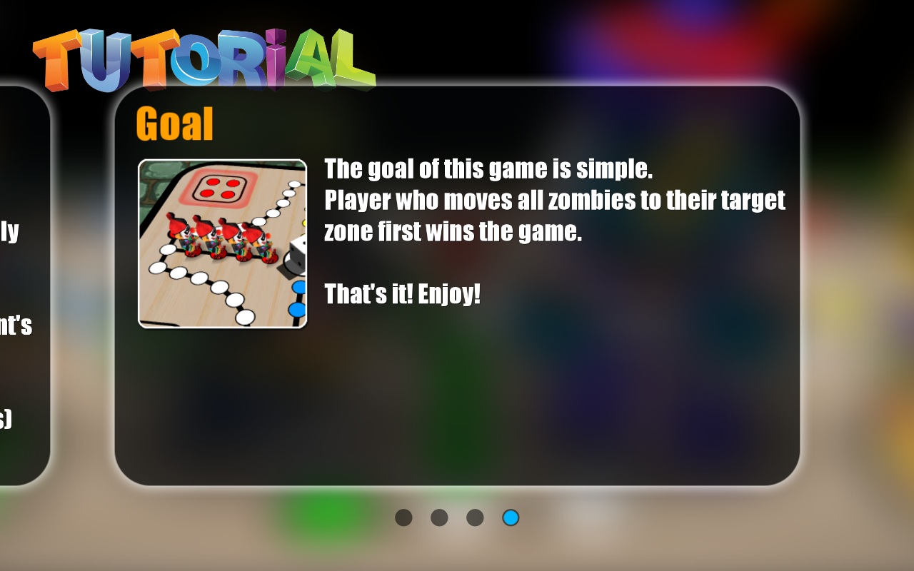 Pick your color, roll the die, and make your way to finish line! But beware, don't let other player stomps your zombies, otherwise, it'll have to start from the beginning again.