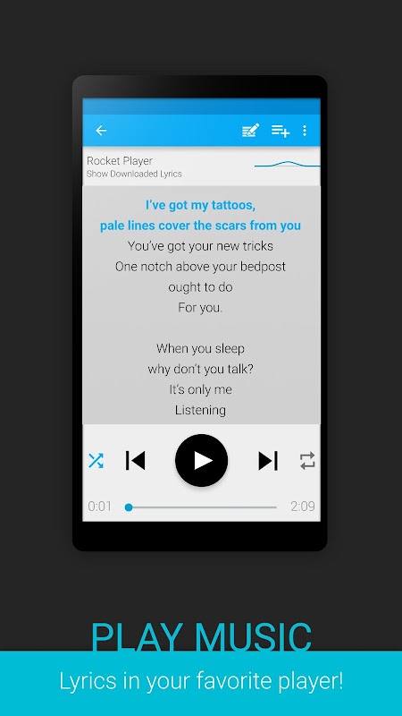 • Affichez les paroles dans Rocket Player, AndroidMusic & GoneMad