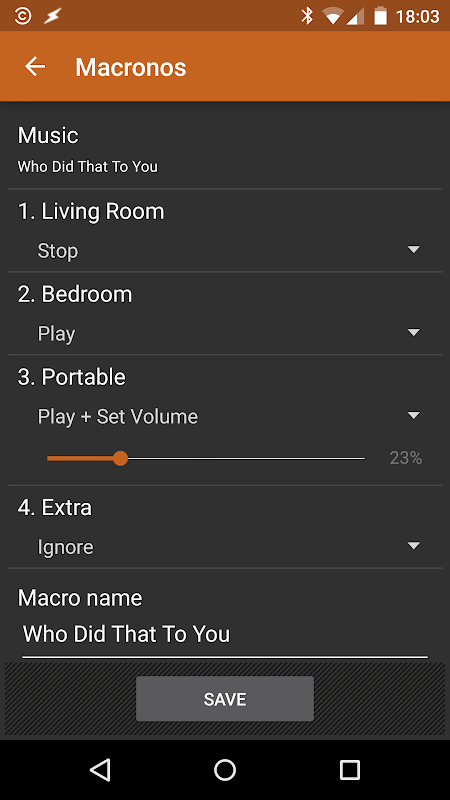 * For radio music services you start the station and select it using the Now Playing menu when configuring a macro.