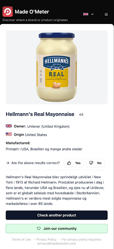 Made O'Meter a été créé au Danemark au cours d'un projet de week-end, motivé par une demande croissante de transparence de la chaîne d'approvisionnement. Ce qui a commencé modestement est devenu un mouvement mondial, permettant aux gens de faire leurs achats en se basant sur des valeurs, et non sur des suppositions.