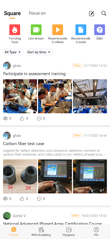 Téléchargez MAI TECH, vous pouvez accéder librement à des tutoriels et à des connaissances qui facilitent votre travail quotidien avec les instruments de SIUI. Les webinaires et conférences en ligne doivent offrir les dernières informations et des échanges techniques avec des experts, améliorant les compétences CND à tout moment et n'importe où.