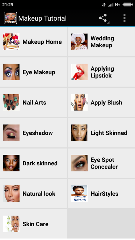 The Makeup Tutorial app is design for user who wants to learn and do makeup from the comfort of their home. Learn to do all form of head and body makeup. makeup brushes, makeup kit, mascara, makeup brush set, lipstick, concealer, makeup set, eyeliner, foundation makeup, makeup palette, eyeshadow palette, makeup online, bridal makeup, eyeshadow brushes, lip gloss, makeup box, face makeup
