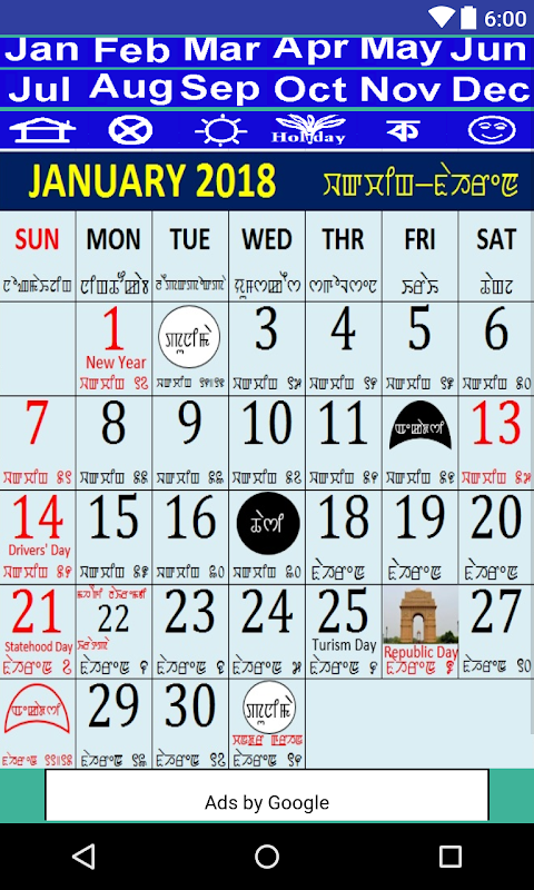 Manipuri lunar calendar for 2017-2019. It is just like traditional Manipuri calendar.