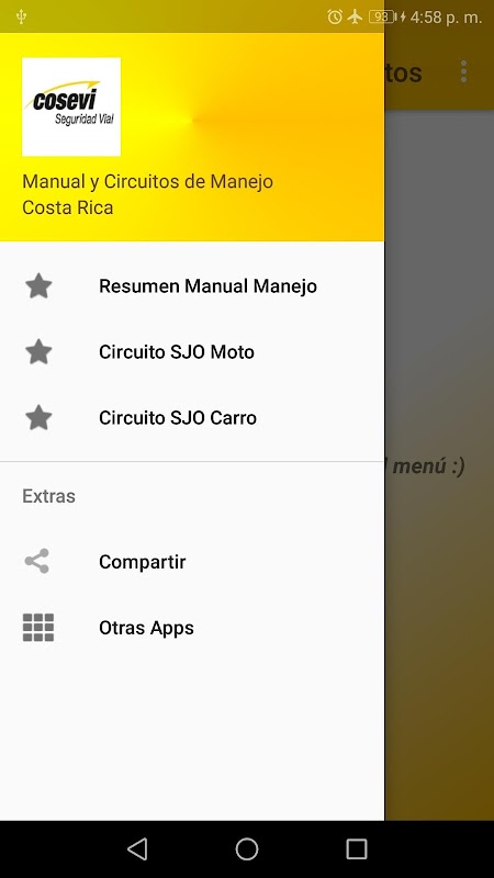 Para matricular la prueba teórica y práctica de manejo , descargar la aplicación COSEVI Consultas, la puede encontrar en el menú, en la opción otras apps.