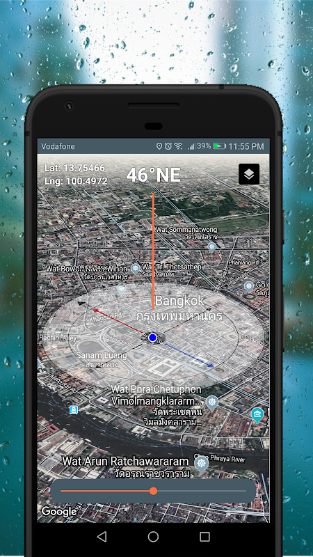 L'application affiche une boussole à votre position sur la carte. La carte pointe toujours vers le nord. Ainsi, tout ce que vous voyez dans la vie réelle sera aligné sur la carte de votre téléphone.