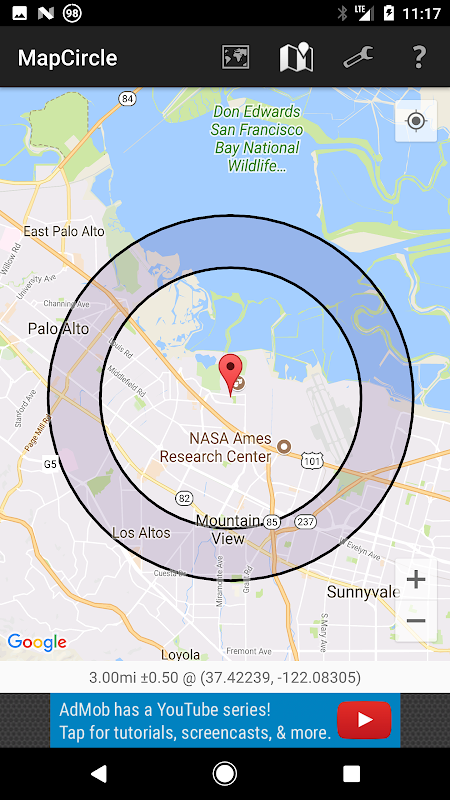 MapCircle est une application simple qui vous permet de visualiser les distances en affichant une carte avec un cercle ou superposé beignet d'un rayon spécifié.