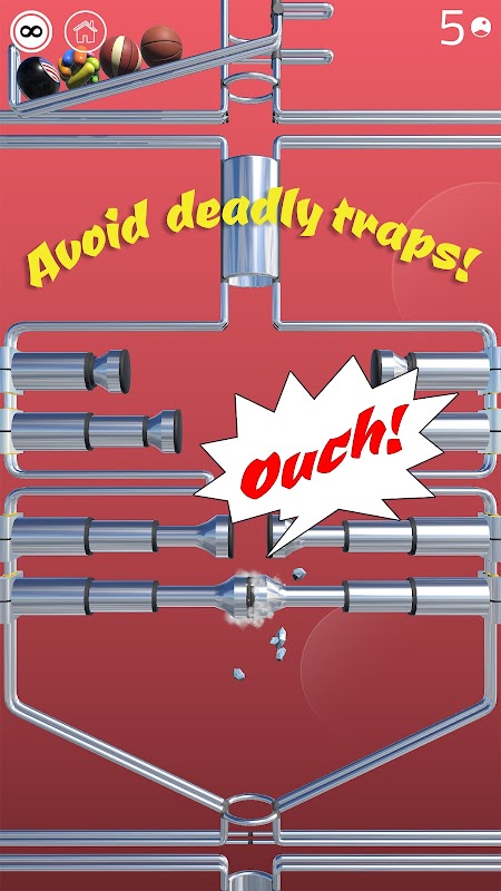 Appuyez pour ouvrir la porte et faire tomber la bille. Évitez les obstacles et aiguisez vos réflexes tandis que la bille tombe à travers les différents niveaux.