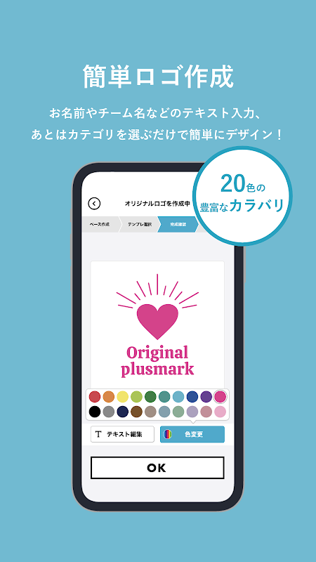 + mark propose deux outils de conception, "logo original" et "police personnalisée". Tout ce dont vous avez besoin est du texte tel que le nom de l'équipe et le nom de l'école.
