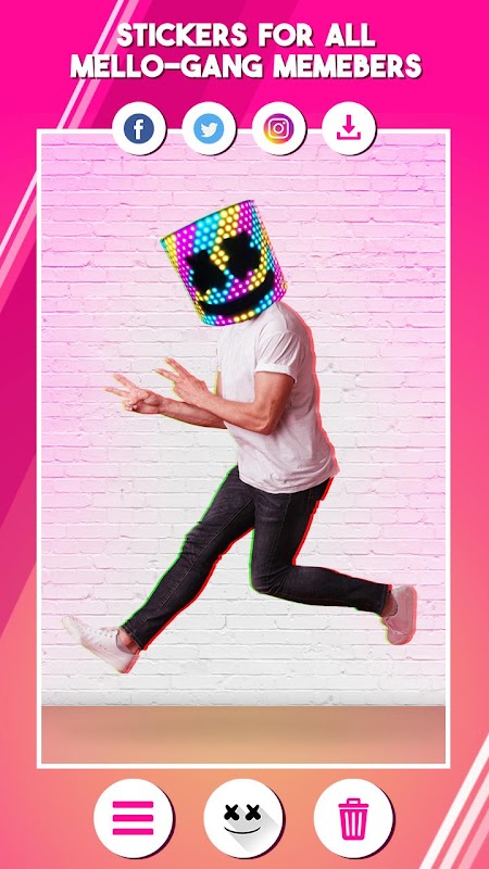 Everyone want's to know the secret who is the person hiding behind the marshmello face mask. And thanks to this marshmello photo edit, you can be the one that wears the world's most famous disguise. All of the stickers for pictures found inside this marshmello photo app have a dj marshmello theme. Browse through them and find the perfect marshmello face filter to hide your identity and share your marshmello pics directly to social media to show that you are the biggest fan of marshmello music. Whether you plan to use the marshmello face camera just on yourself, or disguise everyone in your photo, you can do it with ease. Pick out a photo stickers and rotate it and adjust its size using your fingers to zoom in or out. If marshmello songs make you feel happy imagine what looking like your favorite dj will do, so download this marshmello mask editor and have fun modifying your images.
