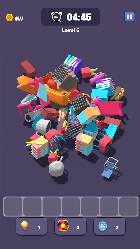 Vous devez faire correspondre des objets 3D sur le sol et les faire tous éclater. Lorsque vous terminez un niveau, vous débloquerez une partie du bâtiment et de nouveaux objets à faire correspondre.