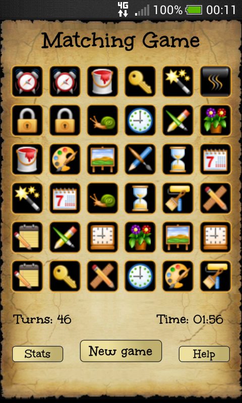 Au début toutes les cartes sont disposées dans une grille de 6 x 6 avec face vers le bas et le joueur à tour de rôle renversant paires de cartes plus. Si les deux cartes correspondent, ils restent ouverts. Le but du jeu est de tourner sur toutes les paires de cartes identiques dans le plus petit nombre de tours et temps le plus court. Le plus petit nombre de tours que vous obtenez score plus élevé!