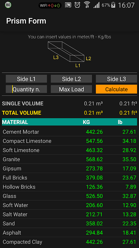 the app will give you the volume of the single beam, the total volume, and the total load. If you put the volume quantity = 1, and the load is a single beam or floor etc.
