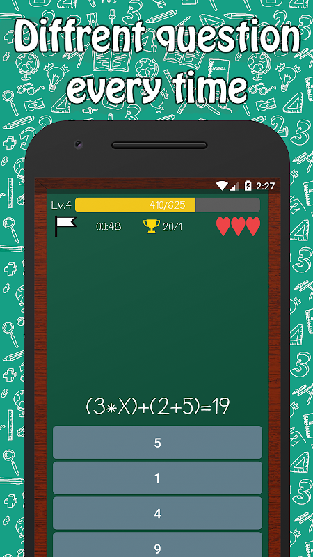 Jouez aussi longtemps que vous le souhaitez, autant que vous le souhaitez, le meilleur mode si jamais vous vous ennuyez et avez besoin de passer le temps rapidement, vous pouvez également choisir le type de question à résoudre.
