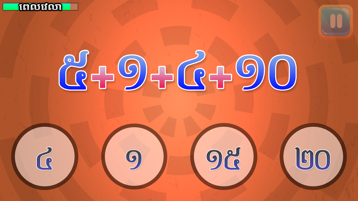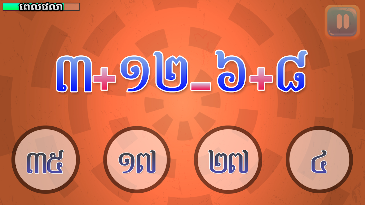 This game is for all age who wish to challenge and strengthen basic math operation of Khmer Numbers include addition, subtraction, multiplication and division.