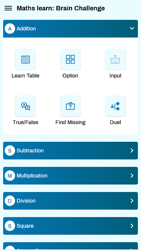 Keep your mind sharp and alert by using Math Challenge to boost your mental powers both in general cognitive function and mental arithmetic. By working on a regular basis (your daily Math Challenge workout) on our challenges you will keep the effects of aging away by continually enhance your mental muscle. Works on all ages!