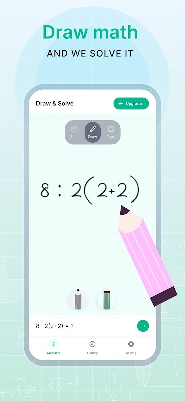 - Reconnaissance de l'écriture manuscrite : écrivez ou dessinez des problèmes et laissez Math Solver les convertir au format numérique pour analyse.