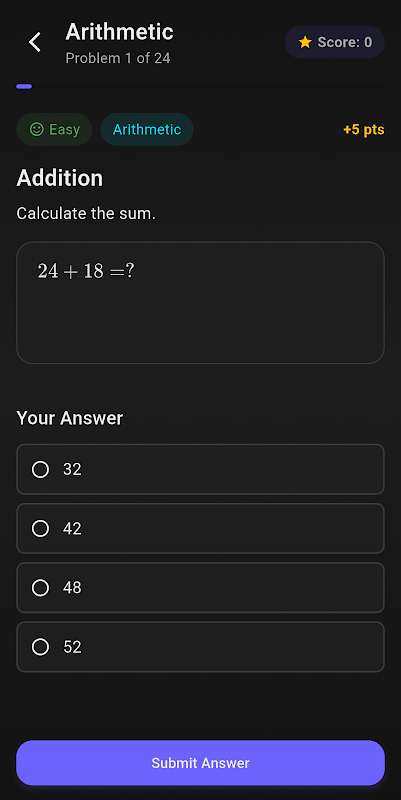 Choisissez votre catégorie, résolvez des problèmes et regardez votre compréhension grandir. L'application propose un large éventail de questions qui testent étape par étape vos connaissances et votre logique.