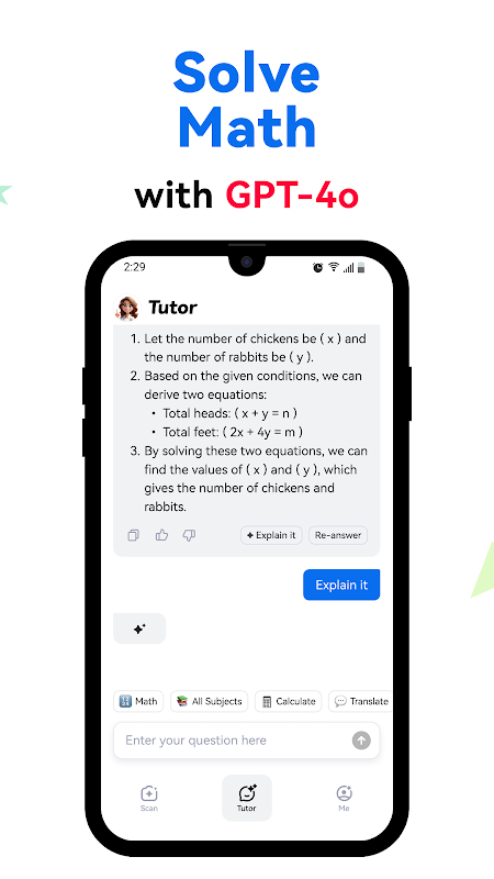 Sur le chemin de l’apprentissage, résoudre des problèmes mathématiques laisse souvent les gens perplexes. Mais ne vous inquiétez pas, Mathlet AI est votre solutionneur mathématique et votre aide aux devoirs. Utilisez simplement votre téléphone portable pour prendre une photo du problème mathématique et vous pourrez obtenir les bonnes réponses avec des explications étape par étape. Vous pouvez également discuter avec le tuteur IA à tout moment pour mieux comprendre les connaissances pertinentes.