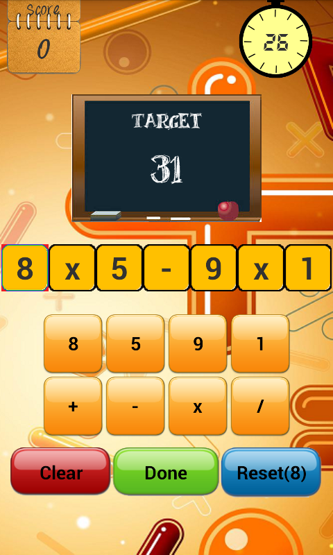 Use resets wisely to tackle hard games.Simple to understand and fun to play. Make your kids play the game and let them enjoy. You will not have to worry about their maths score thereafter. The game also offers three levels i.e. Easy, Medium and Hard to to challenge you. Unlock ExamTime mode and different levels as you score gradually in previous ones.