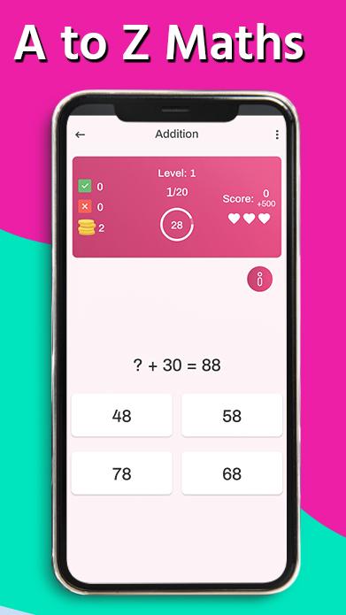 Learn maths by options: Whether you want to learn addition; subtraction; multiplication; division; squa4e; square root or something else you can play it as a game. You will learn maths by enjoying it. There is an option for everything. You choose the options and the app will tell you whether you are right or wrong.
