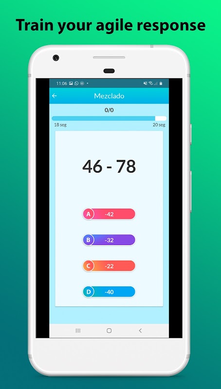 • Infinite exercises: Our application has infinite mathematical operations where you have the opportunity to practice your mental agility.