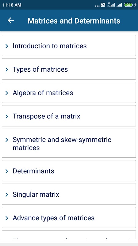 Cette mathématiques «Matrices et déterminants" application est une référence complète pour l'algèbre matricielle et ses opérations mathématiques pour diverses applications. Nous avons essayé de notre mieux pour inclure presque tous les sujets avec ses explications. Ici vous pouvez trouver tous les sujets de matrices et déterminants comme