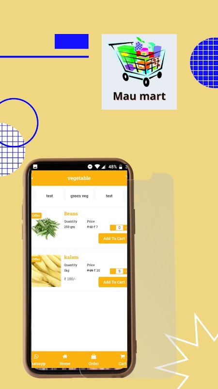The customer can purchase the grocery items using the mobile app on the go.