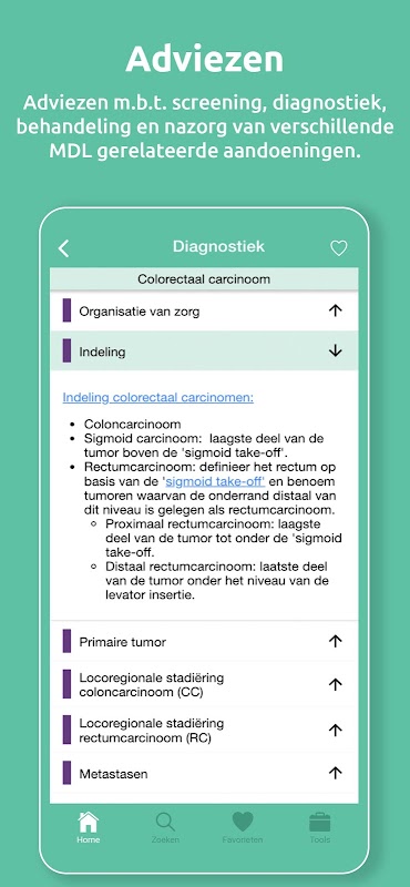 Utilisez l'application pour consulter immédiatement les conseils/recommandations au cabinet du médecin ou aux urgences. Qu'il s'agisse de dépistage, de diagnostic, de traitement ou de suivi. Utilisez des outils pratiques et des arbres de décision pour arriver à de bons conseils/politiques. Enregistrez vos pages ou outils favoris pour les retrouver rapidement. Toujours prêt à l'emploi, où que vous soyez.