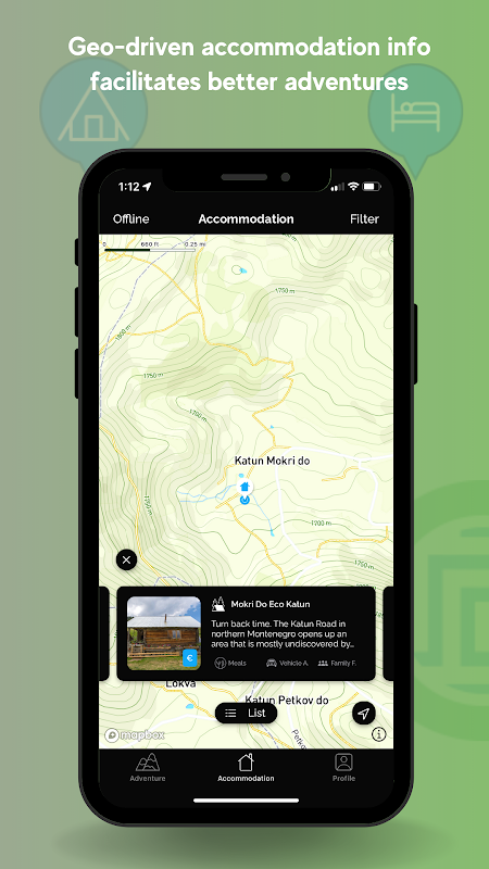 Outre les séjours à la ferme dans les villages et les montagnes, l'application Meanderbug vous fournit également des informations sur d'autres lieux de séjour alternatifs à proximité, comme les refuges de montagne locaux traditionnels appelés katuns.