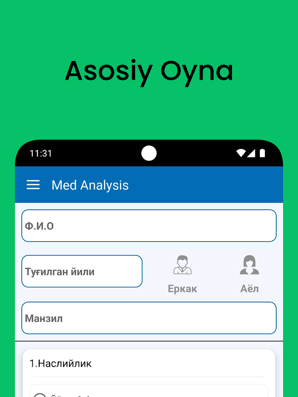 Kerakli bo'limlarni tanlash orqali o'zingiz uchun tashxis oling.