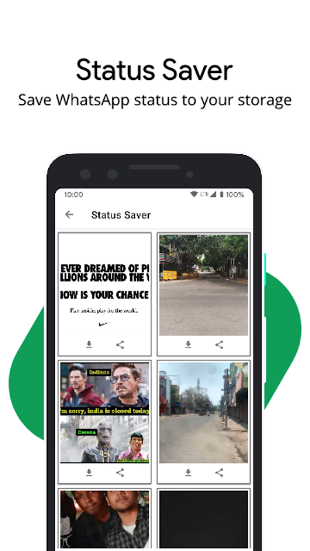 This app giving facility you to download multi options such as images, GIF, and Video status from your Whats app and easily share with your friends.