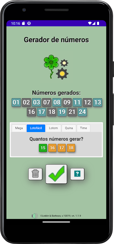 Application simple qui génère des nombres aléatoires à utiliser dans les loteries brésiliennes.