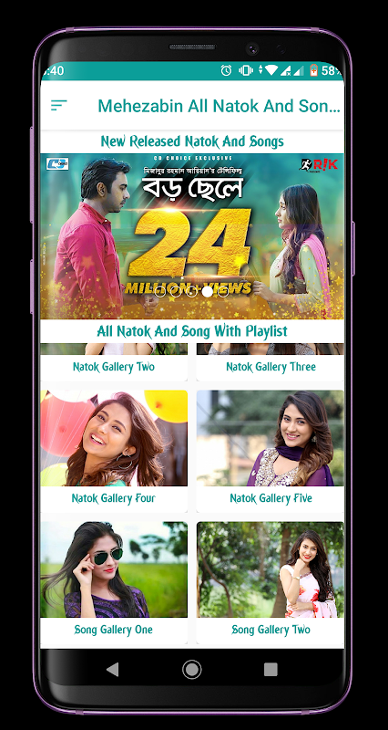 1.Besoin d'une connexion Internet pour utiliser mehezabin natok et chanson.