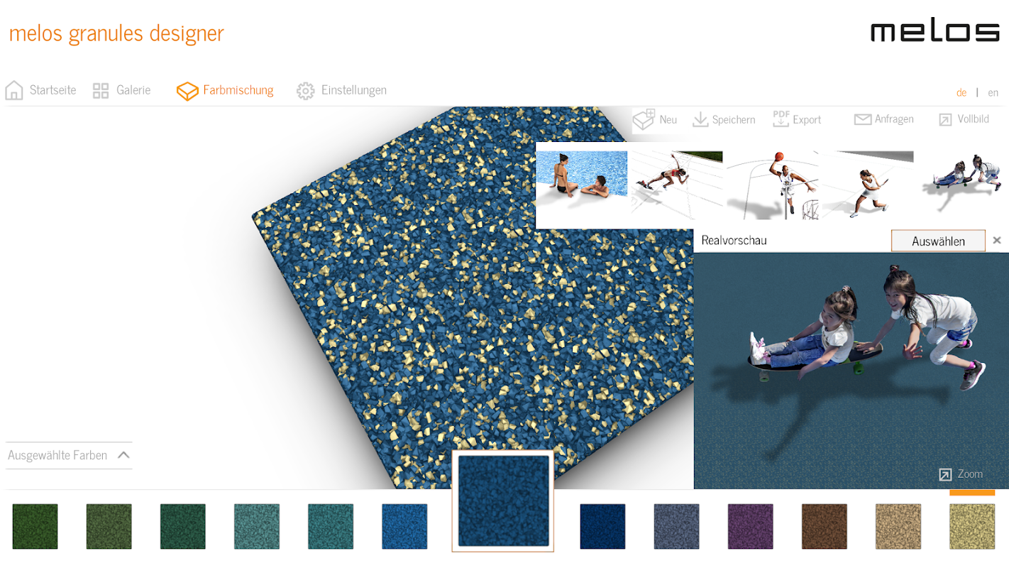 Découvrez l'infinie variété de granulés Melos et concevez votre propre revêtement de sol en quelques minutes seulement !