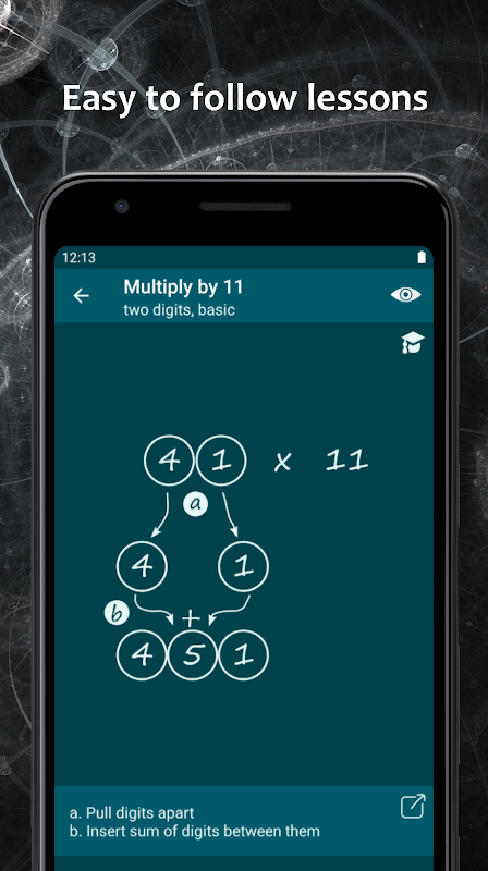 Toutes les techniques sont conçues pour vous aider à effectuer des calculs complètement dans votre tête, avec un stylo et du papier. Les techniques sont introduites dans un ordre naturel, de sorte que vous progressez progressivement à travers 9 niveaux de réussite, jusqu'à ce que vous deveniez un mathémagicien certifié !