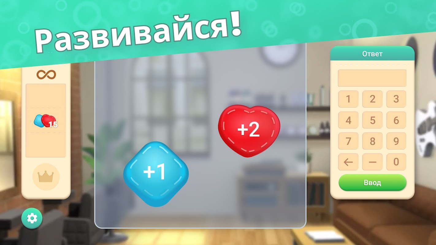 Решайте задачи по ментальной арифметике, чтобы преобразить своего героя и его комнату.