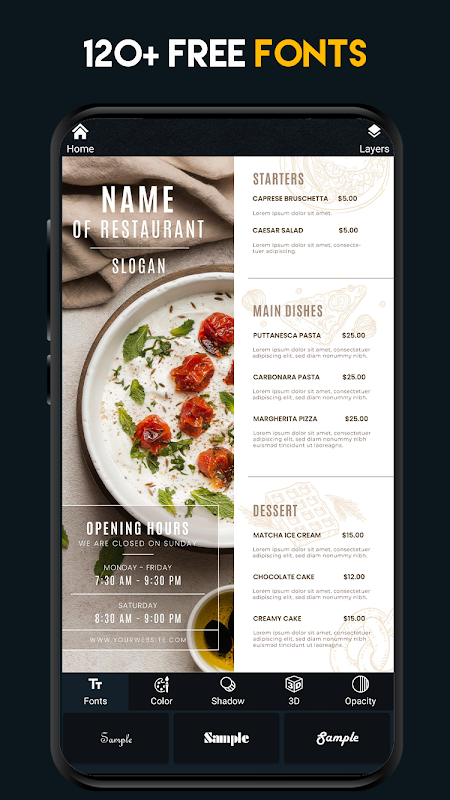 - Très bonne application de création de menus pour restaurant, café, bar, menu de magasin et création d'un modèle pour l'événement