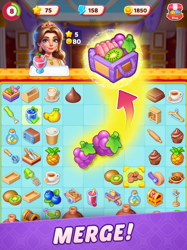 Avec des centaines d'objets à fusionner, associer et combiner, il y a toujours quelque chose de nouveau à découvrir ! Débloquez des objets rares et légendaires, agrandissez votre royaume et participez à des événements spéciaux pour gagner des récompenses exclusives. Que vous résolviez des énigmes, cuisiniez ou décoriez de grandes salles, l'excitation est sans fin.