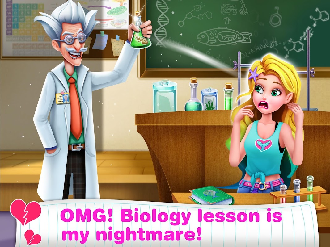 10. Il est temps de se lever. Habillez la nouvelle tenue et le maquillage de la sirène pour aller à l'école.