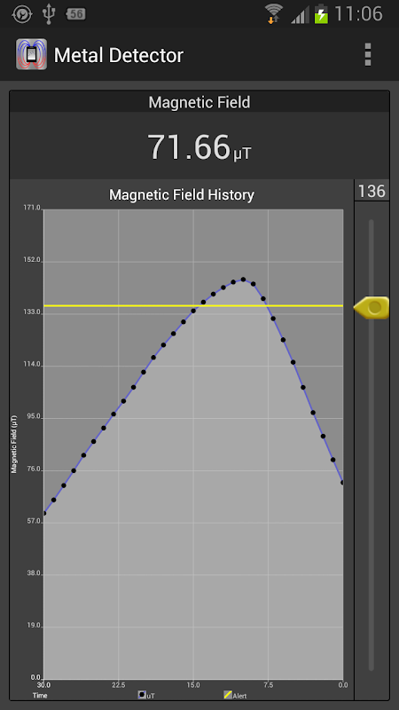 The metal/magnetic field detector may require you to move your device close to the magnetic source (10-15cm) before a reading can be done.